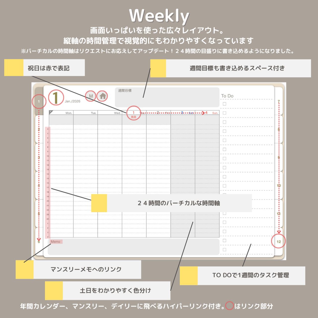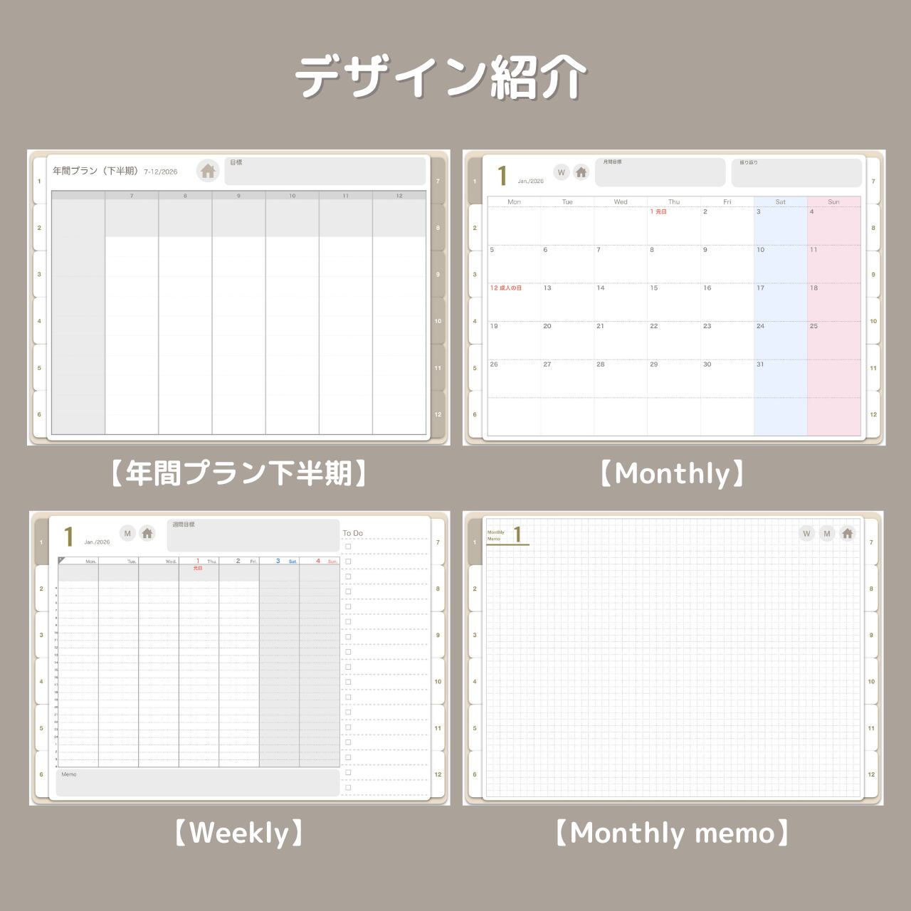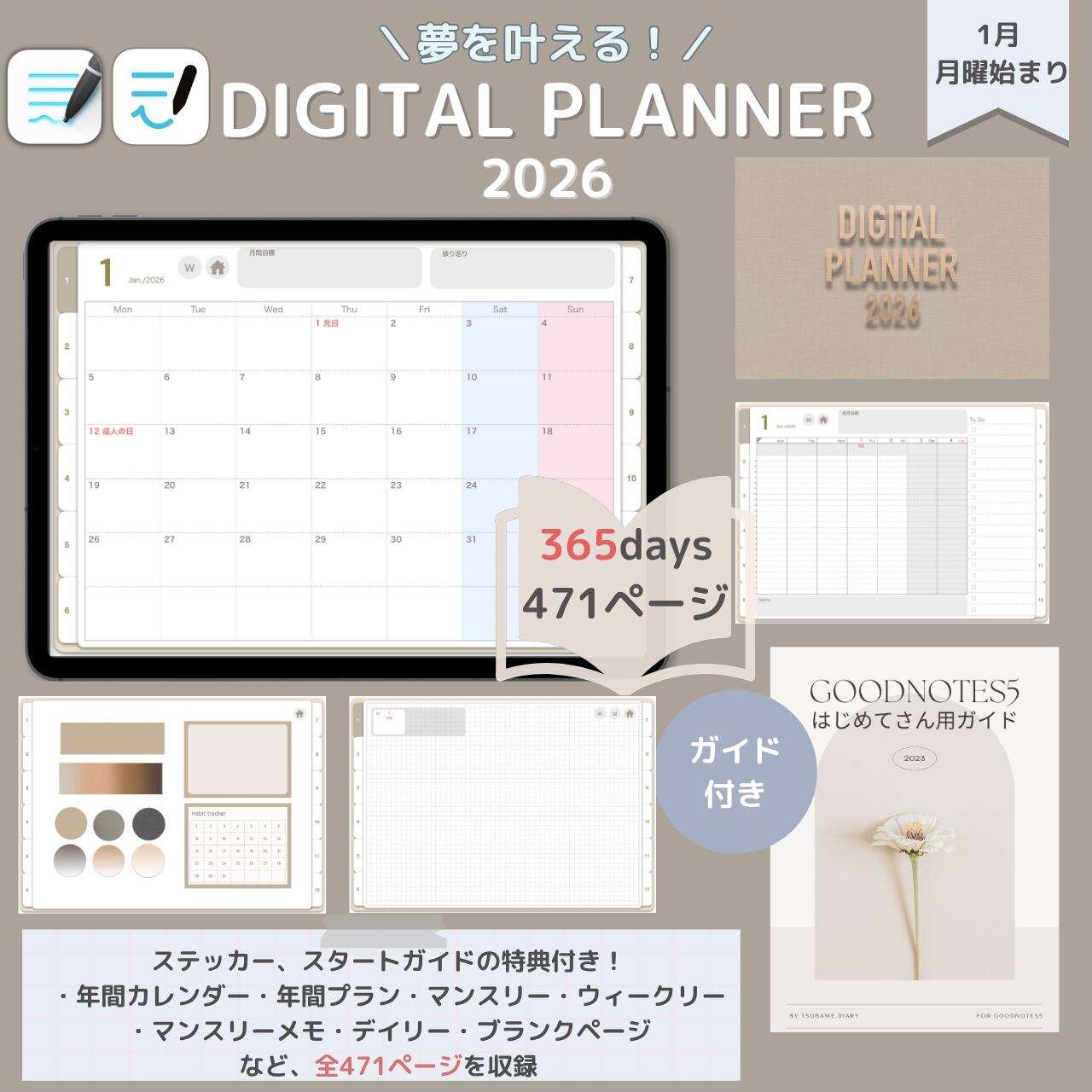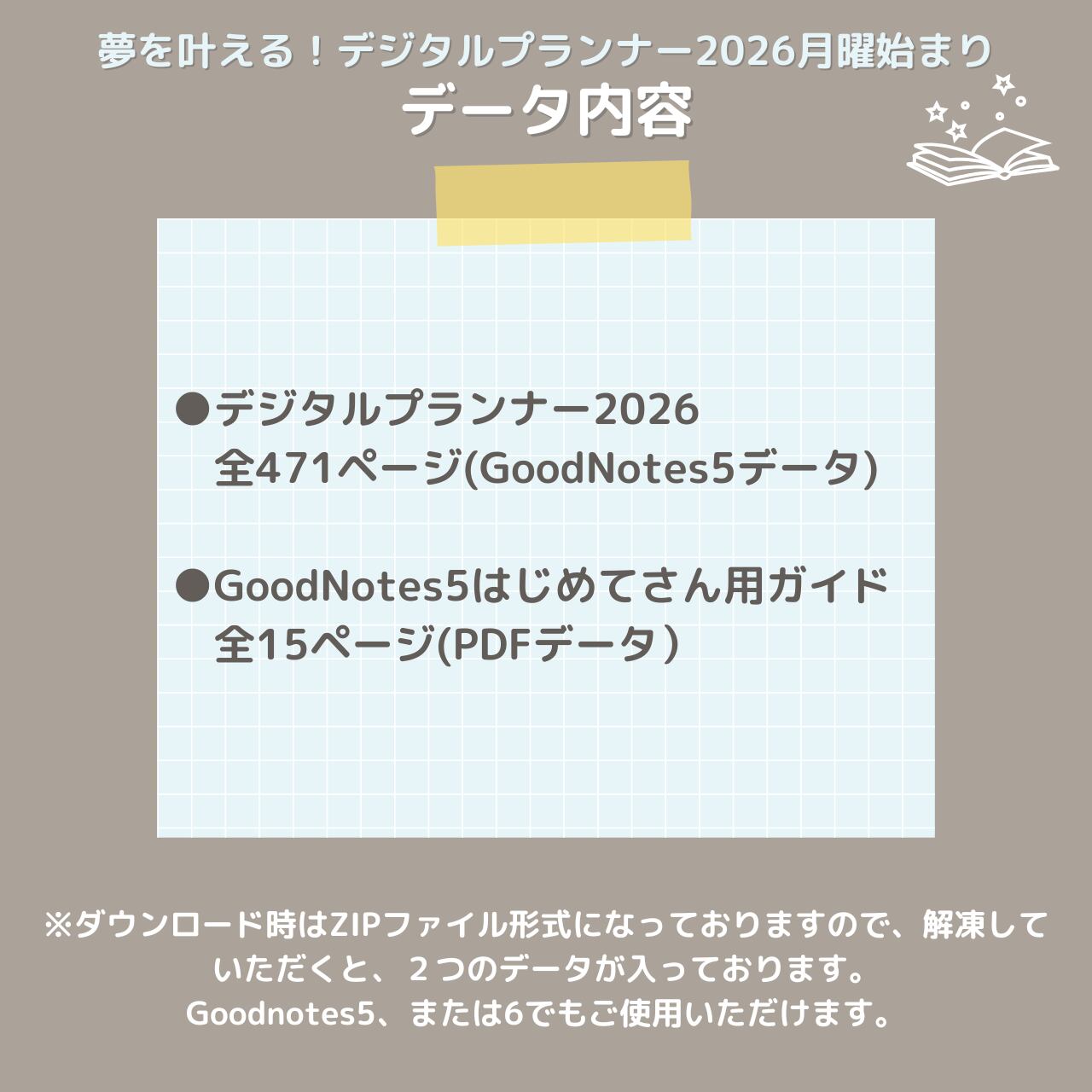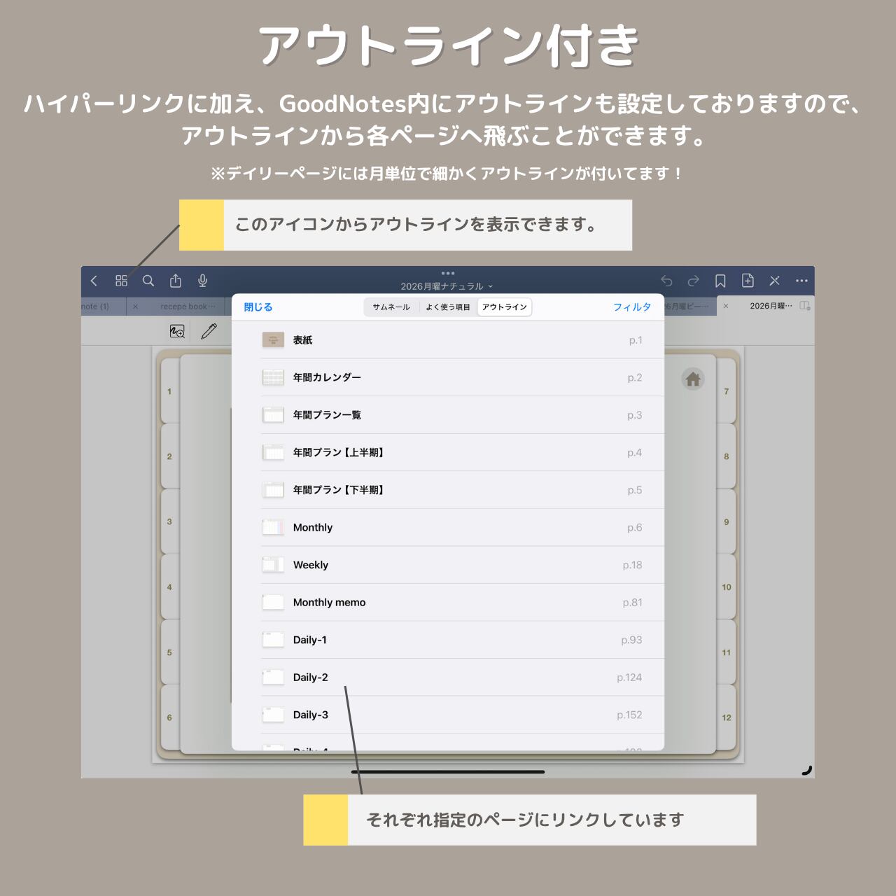 夢を叶える!2026デジタルプランナー365日のページ付き(月曜/1月始まり)【Natural ナチュラル】GoodNotes5、6