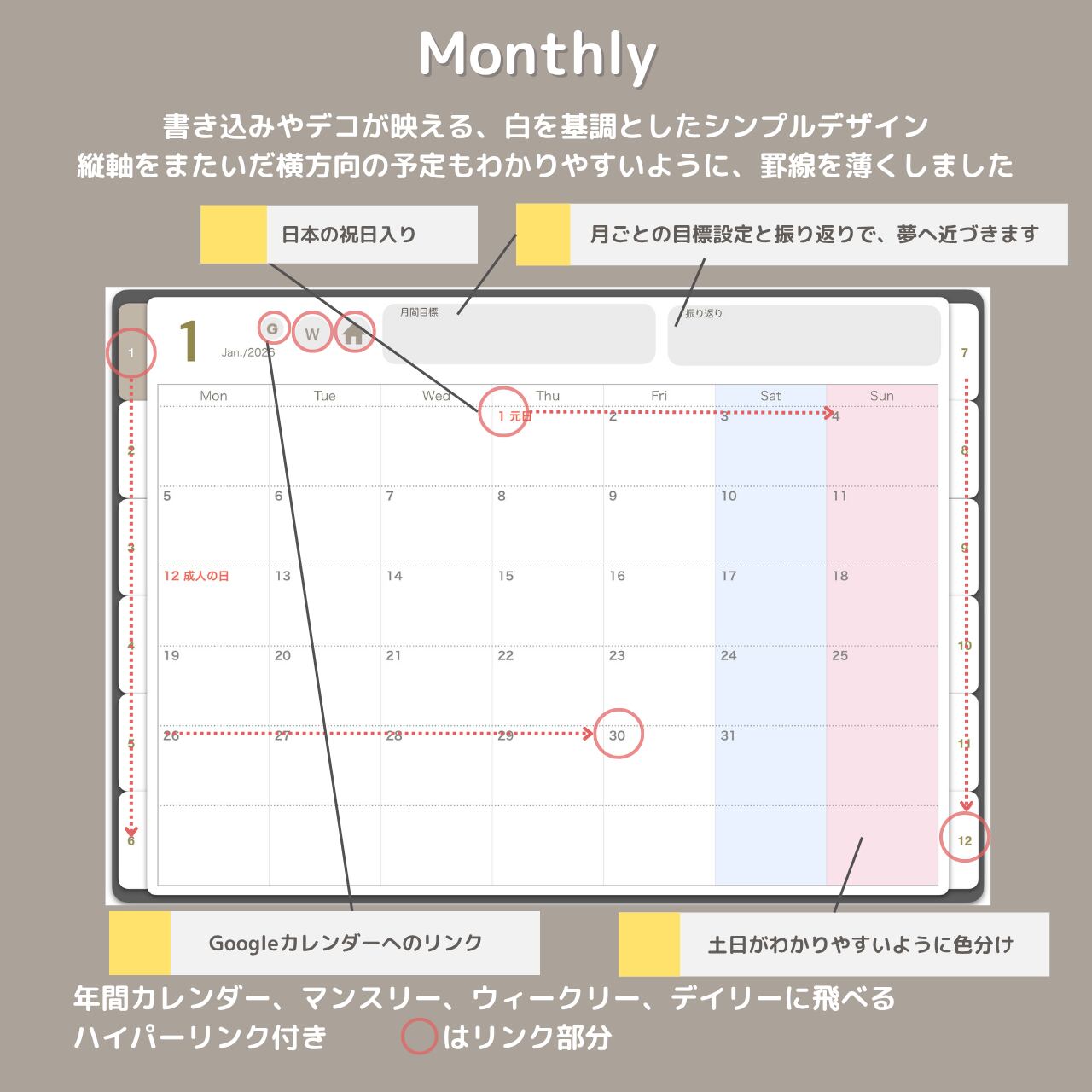 夢を叶える!2026デジタルプランナー365日のページ付き(月曜/1月始まり)【Googleカレンダーリンク版】GoodNotes5、6